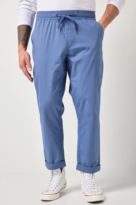 Slip-on-bukser FLEXNAMIC®. Ca. trended knystlængde af højelastisk komfortkvalitet med elastiklinning og bindebånd. 4 lommer. Løs lining, stor lår- og benvidde, smal ankelvidde.